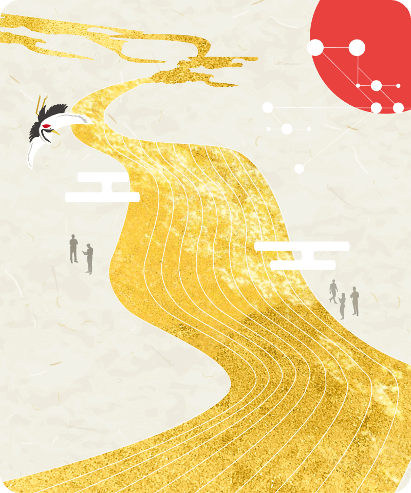 川の流れかお見合いか。 JPNAPのWebサイトは「川」をモチーフとしています。あちこちから集まってきた細い潮流がだんだん太くなり一か所に集積、勢いを増して生活者へと分岐し流れていく潮流…これを、JPNAPが扱うデータの流れに模して表現しました。川は時に不合理な動きもしますが、大局で見ればその土地その土地に...